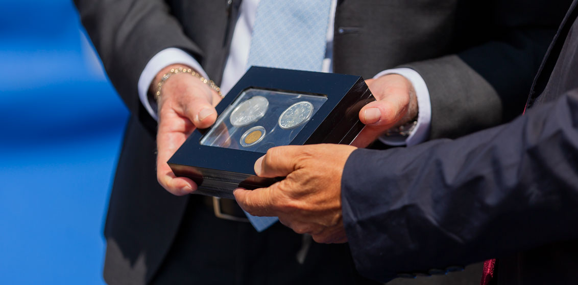 The time-honoured maritime tradition of a ship’s keel being laid is the formal recognition of the start of a ship’s construction. The ceremony surrounding this milestone event includes the welding of specially chosen coins to the bottom of the ship as a symbol of good luck and to bless the vessel. The three coins selected for the Keel Laying ceremony include: