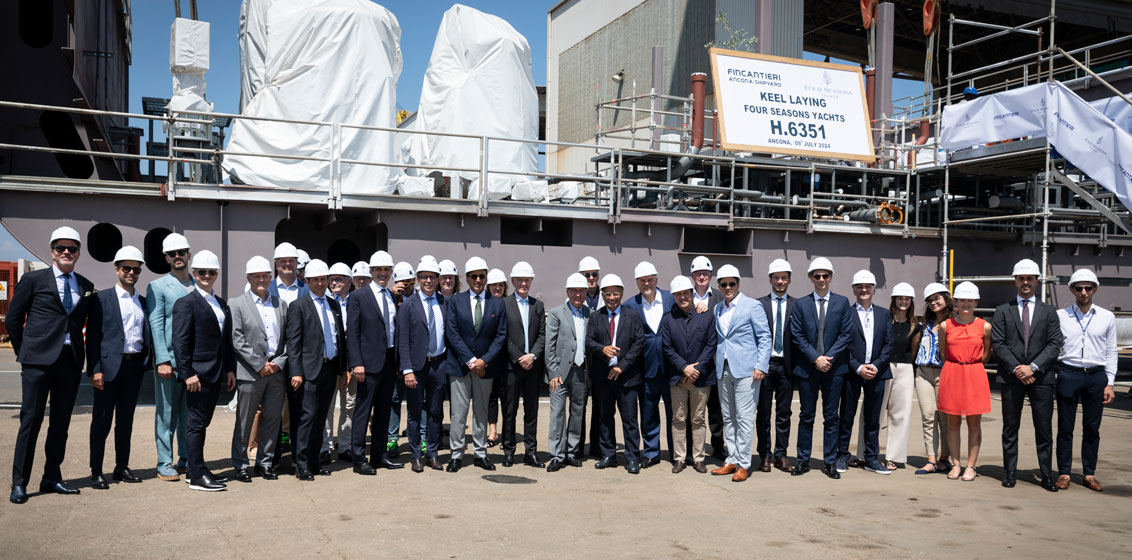 The construction of Four Seasons Yachts‘ first ultra-luxury yacht achieved a milestone overnight when the keel was laid at Fincantieri’s shipyard in Ancona, Italy.