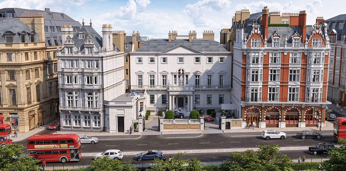 The five-star hotel site also includes the adjacent residential development of One Carrington and the cobblestone streets of Shepherd Market.