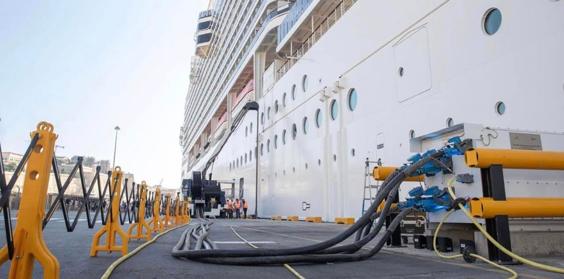 Valletta’s local power grid supplied electricity for all MSC World Europa’s operations while the ship was berthed to allow all engines to be switched off and eliminate the vessel’s direct emissions at the port to improve local air quality.