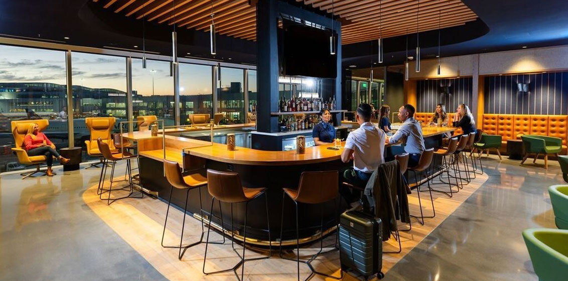 Upon entering the SFO Lounge, guests are transported to a tranquil retreat. Here they can enjoy hand-crafted espresso beverages from a barista station or enjoy a refreshing local craft brew and a glass of West Coast wine from the contemporary bar.