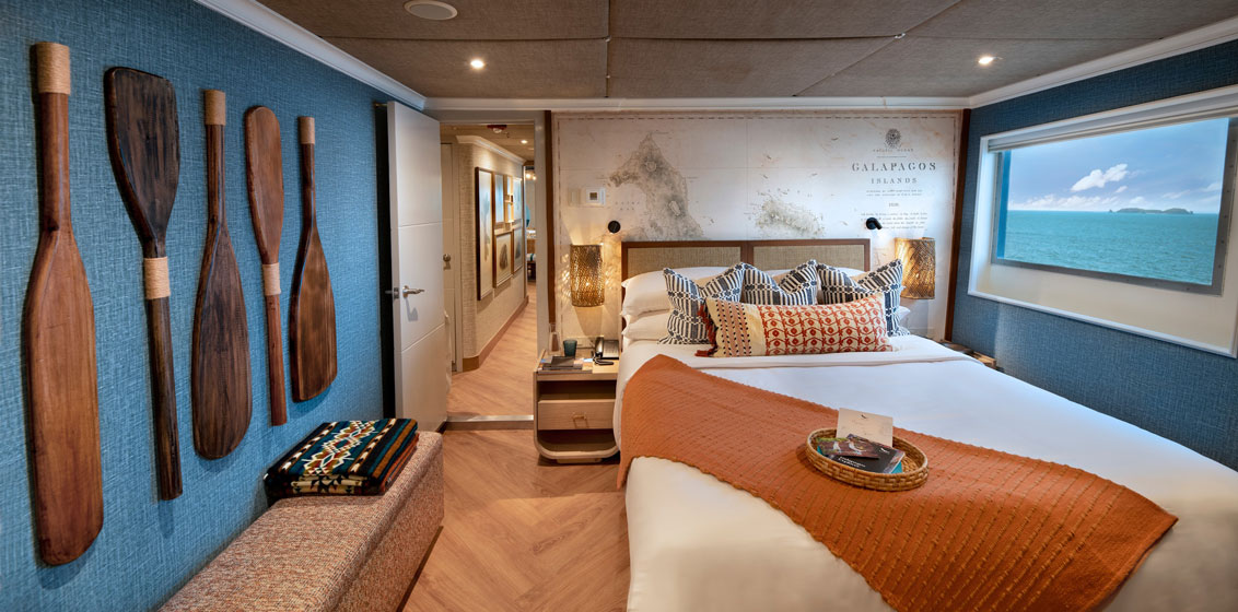 Urzua said one key aspect of andBeyond Galapagos Explorer is that three cabins on Deck 1 are all located within very close proximity to each other, and can accommodate a small group of seven guests – between one Super Suite and two Luxury Cabins.