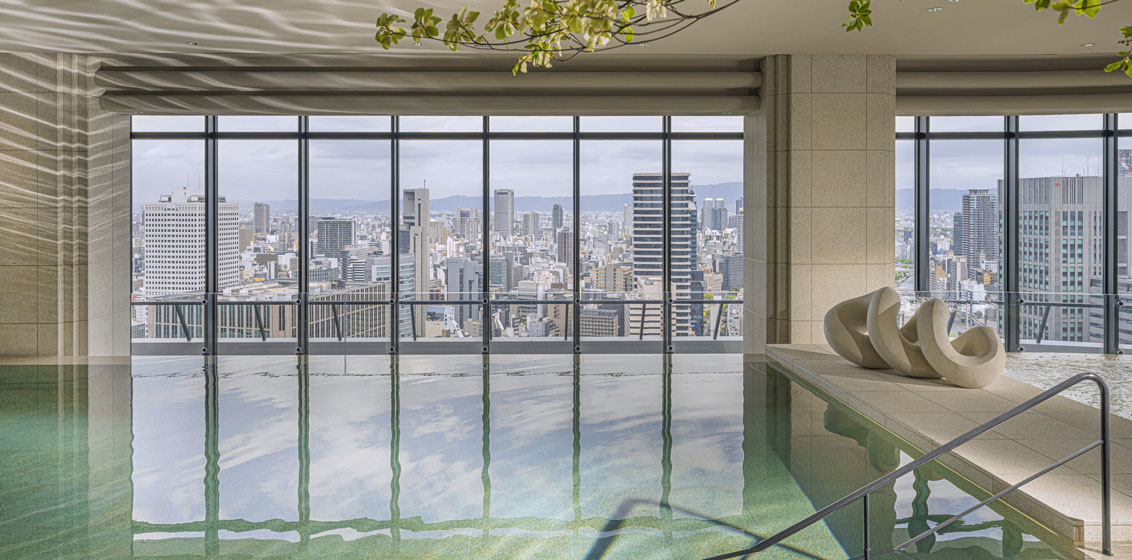 Wellness facilities also include ofuro (Japanese baths that have been an important part of daily life in Osaka for centuries) and sauna, a 16 metre (52 foot) indoor pool that appears to spill through windows into the city’s network of waterways, and a 24/7 fitness centre with floor-to-ceiling views across the city.