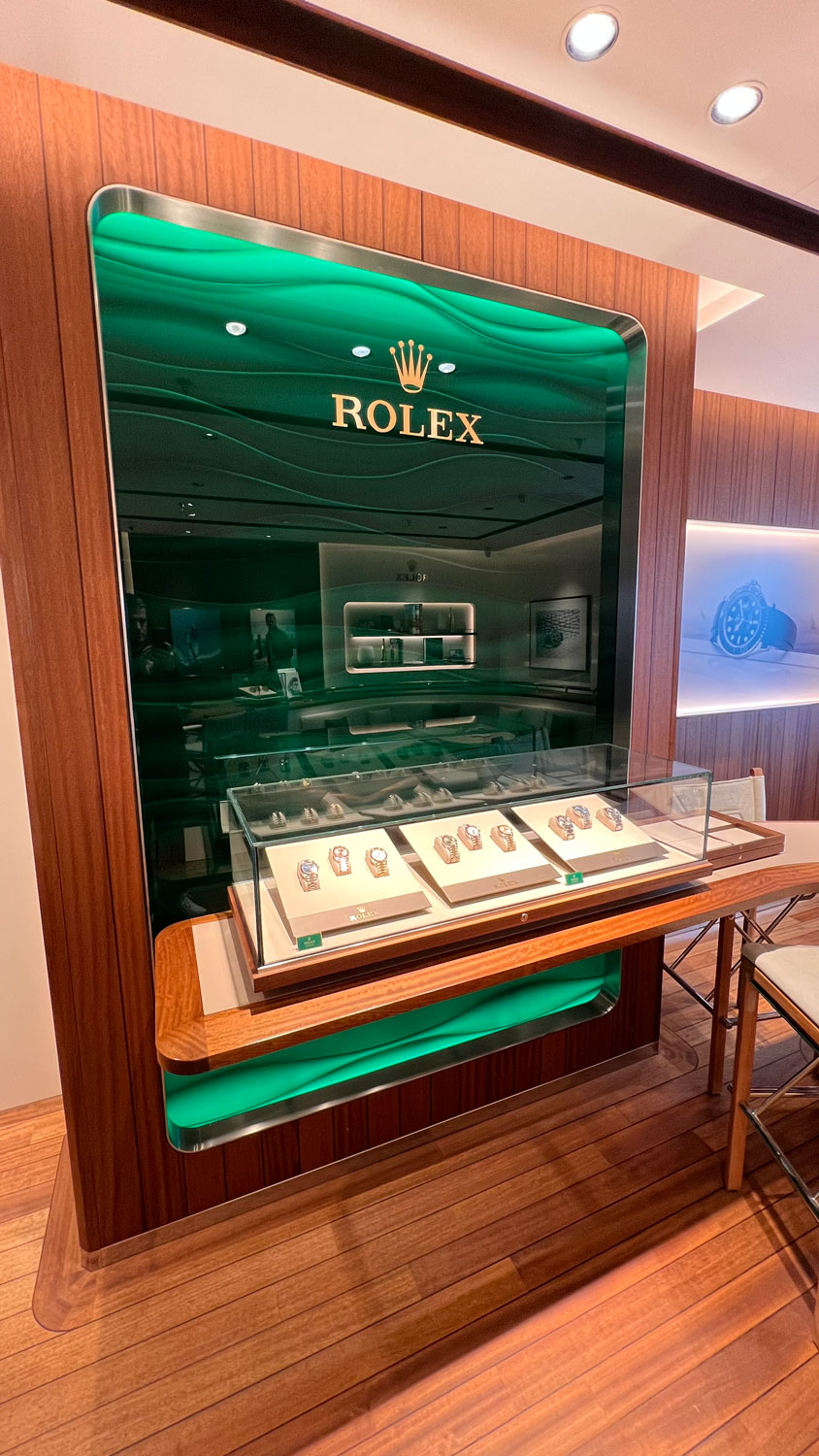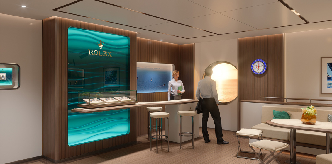 “Aboard EXPLORA I, we have four watch shops on board, and because we’re a Swiss company, they are Swiss focused watch shops. We have Piaget, Panerai, Cartier and the only Rolex store at sea.”