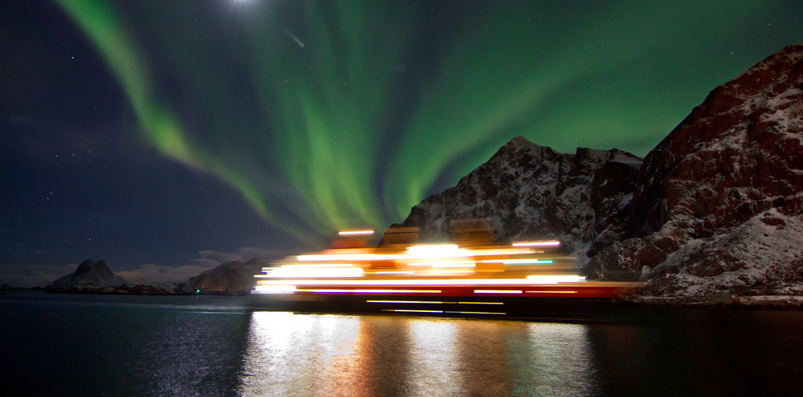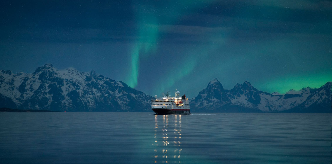 One of the best ways of experiencing the Northern Lights is on a Hurtigruten voyage during the winter season.