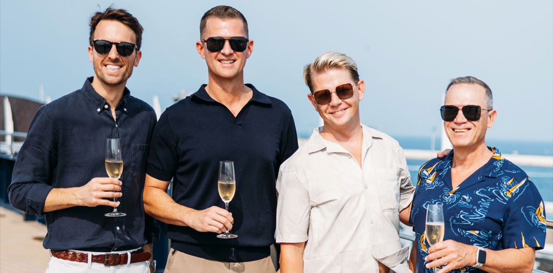 Lead image, from left are: Seb Seward, Vice President and General Manager APAC, The Ritz-Carlton Yacht Collection; Phil Smethurst, Bicton Travel, with Liam Jarman and David Brandon, both from Savenio.