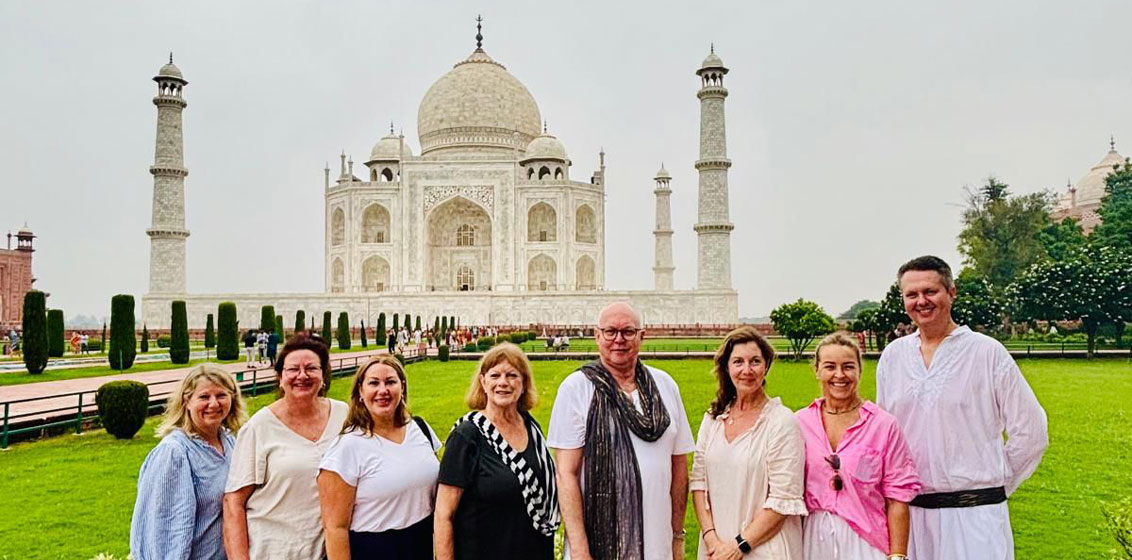 One of the benefits of an early rise when travelling is avoiding crowds, as this group of Australian travel advisors in India at the moment can attest to having woken at 5am for a sunrise viewing of the iconic Taj Mahal with virtually no other soles around.