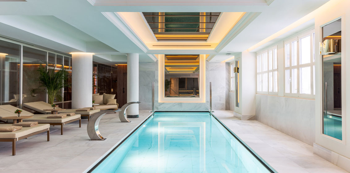 Among its cultural spaces, the private cinema room is a standout; Inspired by the classic Hollywood screening rooms of the 1950s, it provides a nostalgic connection with the seventh art, film. Literary lovers can retreat to the library to unwind amidst the bookshelves in a cozy and peaceful atmosphere. The hotel also boasts a number of leisure spaces including a thermal pool and a fitness centre. Notably, the fitness centre features a unique space with a ballet barre, paying homage to the elegant art of dance.