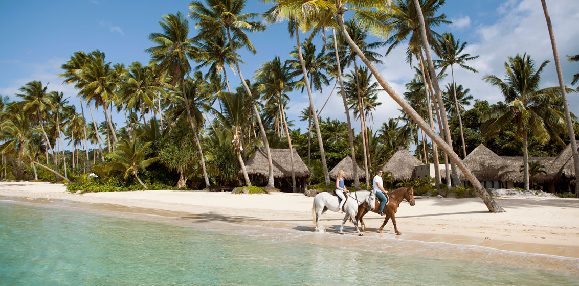 Swimming bareback: For horseback riders, swimming bareback in the Pacific Ocean offers a one- of-a-kind equestrian adventure. At COMO Laucala Island In Fiji, even novices can savour this unique experience, riding along a two-mile stretch of white sandy beach fringed with palms. Our horses are calm, well-trained, and energetic crossbreeds of Australian Thoroughbreds (originally bred for the Melbourne racetrack) and British Clydesdales (traditionally used on coconut plantations). The stables are managed by our island’s resident Fijian ‘Horse Whisperer,’ who also leads guests on scenic rides through the island’s lush, dappled forests.