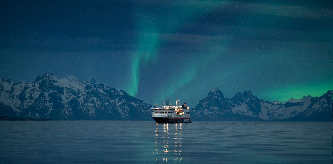 “Hurtigruten really does offer one of the best possibilities in the world to see the Northern Lights as our ships travel through the large geographical hotspot for the Aurora Borealis – Nordland, Troms, and Finnmark in Northern Norway – for multiple days each sailing. Additionally, the chances of viewing the Northern Lights from a ship are significantly better compared with on land, especially with minimal light pollution onboard Hurtigruten’s ships.