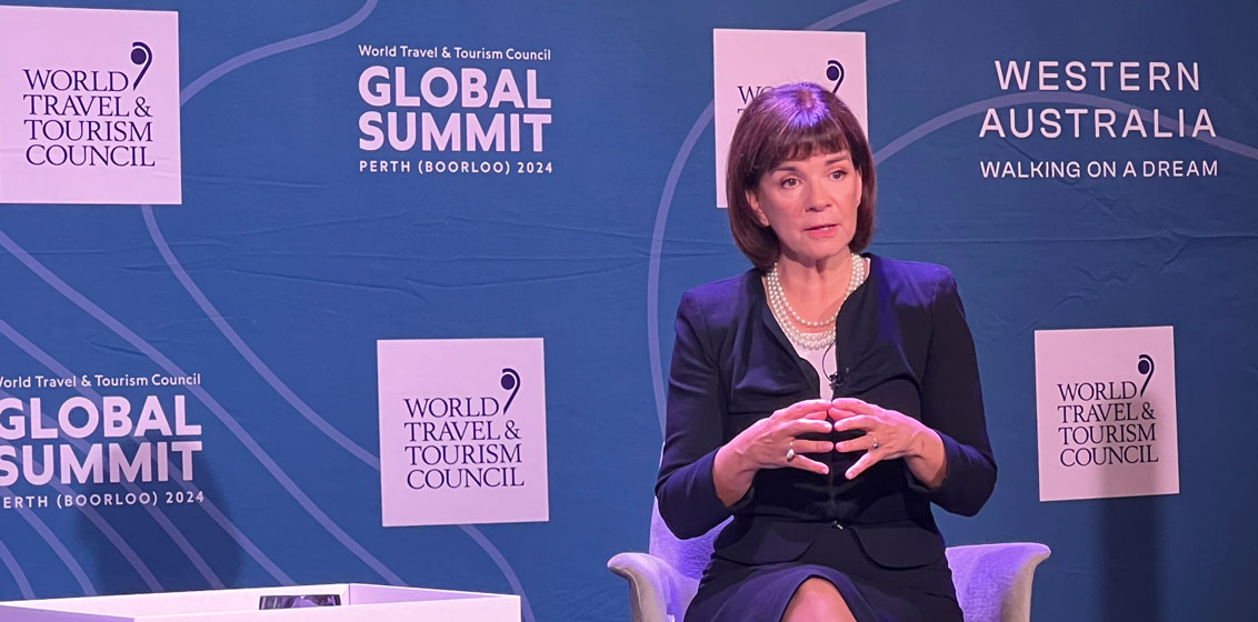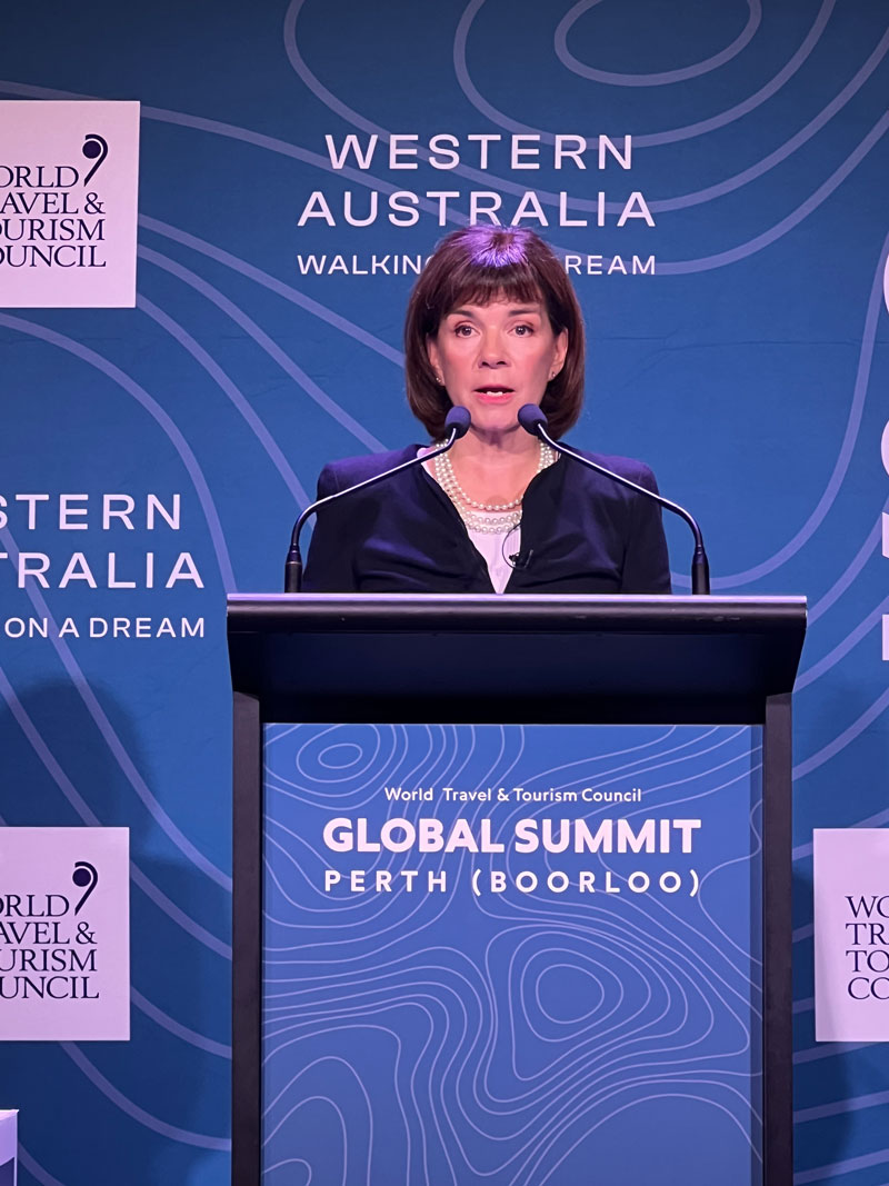 Lead image: Julia Simpson, President and CEO, World Travel & Tourism Council addressing media at the Global Summit in Perth this morning.