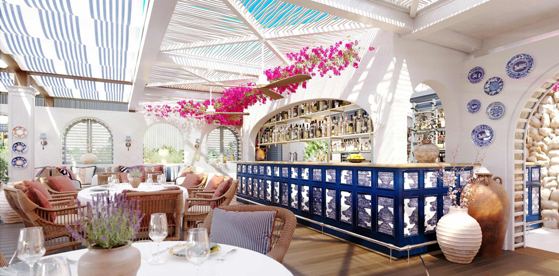 Inspired by Greek mythology, the space will extend across 9,000 square metres and will include restaurant capacity of 400 seats along with a beachfront that features a swimming pool, 300 sunbeds and cabanas.