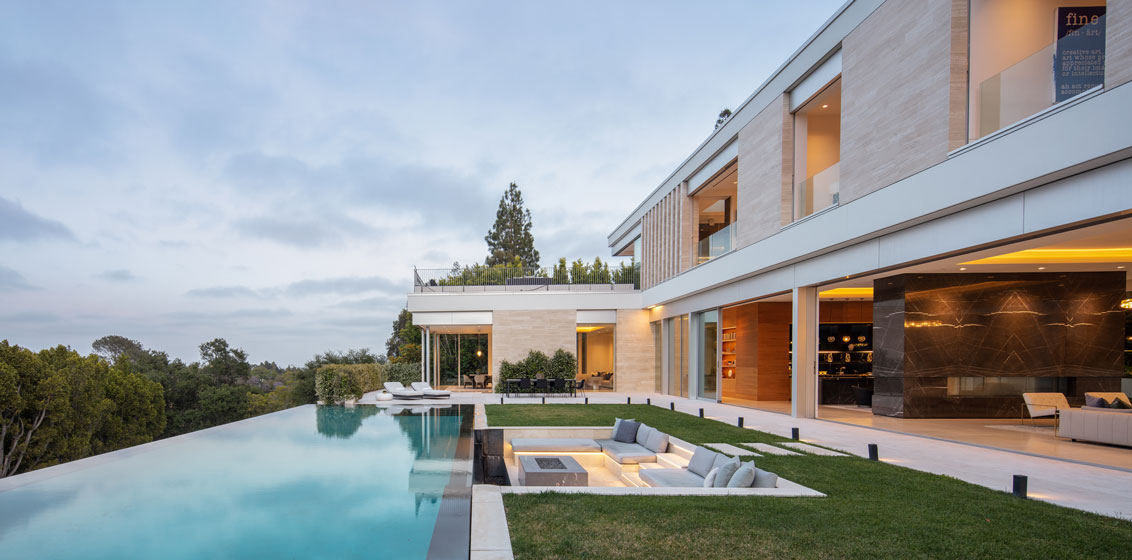 Villa Infinity is a contemporary oasis overlooking the Bel Air Country Club, founded in 1927 it stands as one of the most prestigious private clubs in the city. Designed by London-based Quinn Architects, it encompasses 1,340 square-metres of living space, seamlessly blending indoor and outdoor living. Vast floor-to-ceiling windows frame breathtaking views of the Los Angeles skyline, overlooking a 20 metre infinity pool.