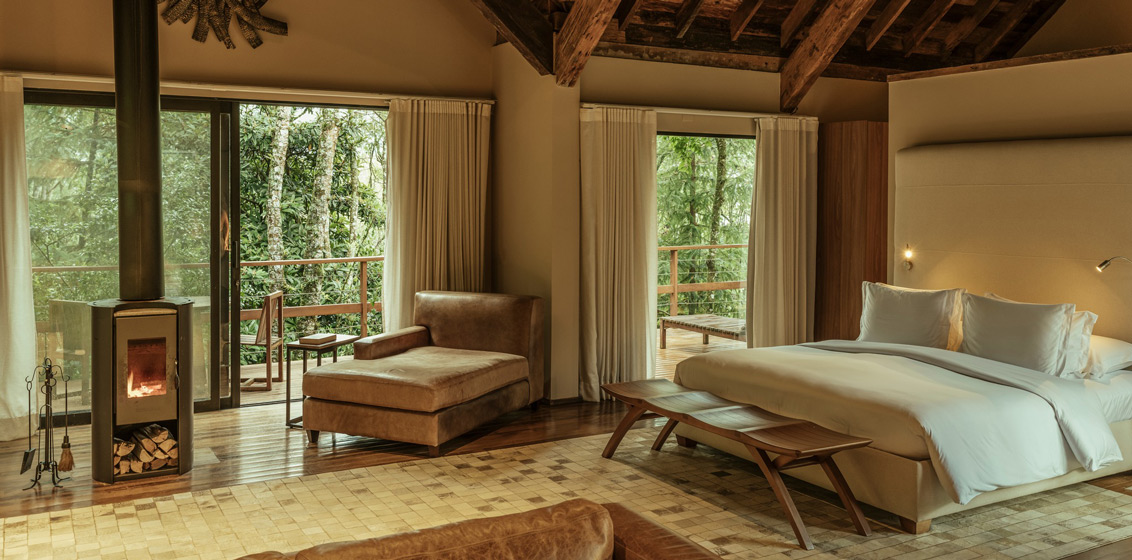 Designed expressly to give guests an immersive experience in the luxuriant botanical world of Campos de Jordão – a vast, protected reserve halfway between Rio de Janeiro and São Paulo. Built to blend into the verdant surrounding forest, the Botanique Hotel Experience sits on a hillside in the midst of the Mantiqueira Mountains. Brazilian architects and artists are behind its design, a combination of enormous clay stones extracted from the nearby rivers, pink cedar wood, and chocolate slate.