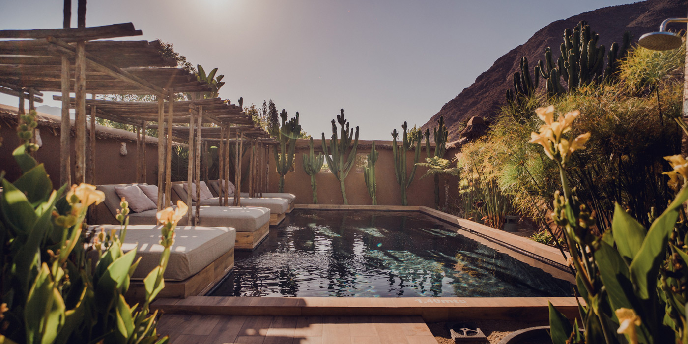 South of the stunning Atacama Desert, one of the most parched regions on the planet, lies the Elqui Valley, a land of different type of vegetation. This oasis is the setting for the 42-acre estate – graced with cactus gardens and embraced by Elqui River – that shelters the 24 rooms of the CasaMolle. The all-inclusive approach means the CasaMolle Hotel can offer guests a great variety of experiences. By day, there are hiking, kayaking, and horseback riding to enjoy, or tours of the vineyards that produce the famed local beverage pisco and wine, as well as meditation sessions and spa treatments; by night, the hotel invites guests to try starwatching from its open-air amphitheater.