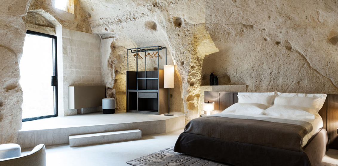 In southern Italy, sits the Basilicata region, home to Matera, an urban jewel that is a UNESCO World Heritage Site. It is a wonderland of white stone houses climbing and tumbling across a rocky mountaintop, woven together by a tangle of alleys and spectacular staircases. The city is famous for the Sassi, troglodyte dwellings dug into the mountain and first occupied during the Paleolithic era. And it is some of these very Sassi – admirably restored – that serve as the setting for the Vetera Matera.