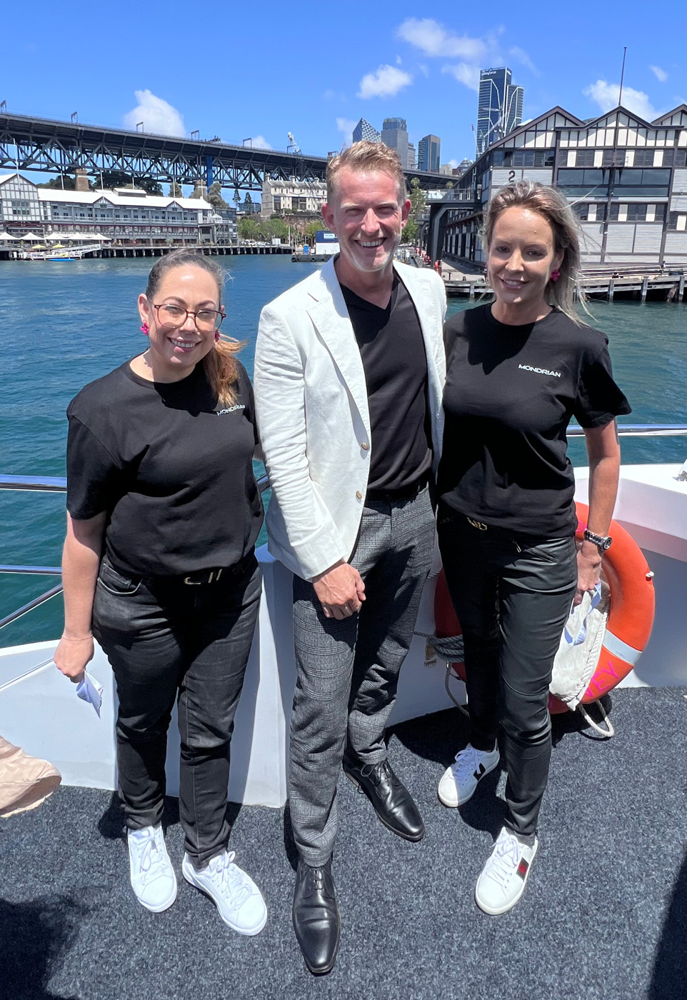 Lead image: Pictured on Sydney Harbour on Wednesday are Mondrian Gold Coast’s Brad Mercer, General Manager, with Kelly Brady (left), Director of Revenue and Megan Pechey, Director of Sales.