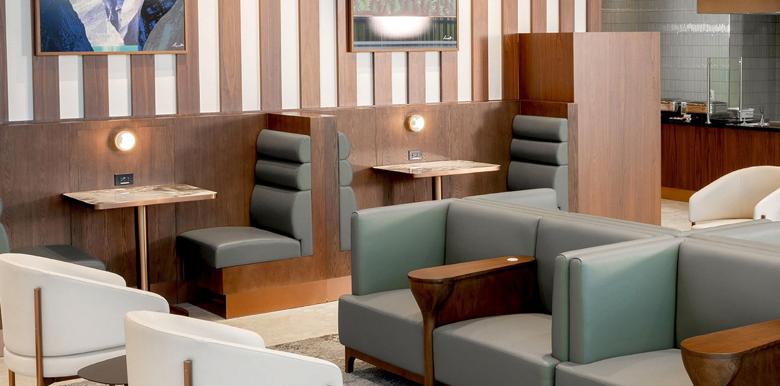 Thoughtfully designed with wellness, convenience and sustainability at its core, both lounges offer quiet zones for privacy and relaxation along with complimentary WiFi, international charging ports conveniently accessible from your seat or table, and Flight Information Displays Screens (FIDS) to keep guests informed.