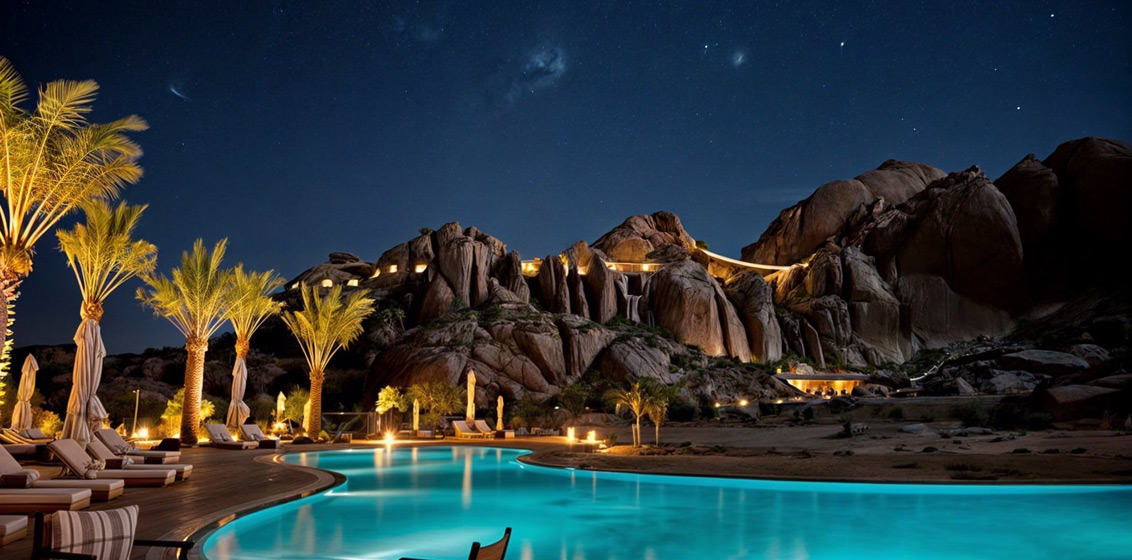 Hidden within the heart of an untouched landscape, Desert Rock is a 64-key luxury hotel featuring pool villas and exceptional dining venues ingeniously integrated into the rugged face of the rocky mountain.