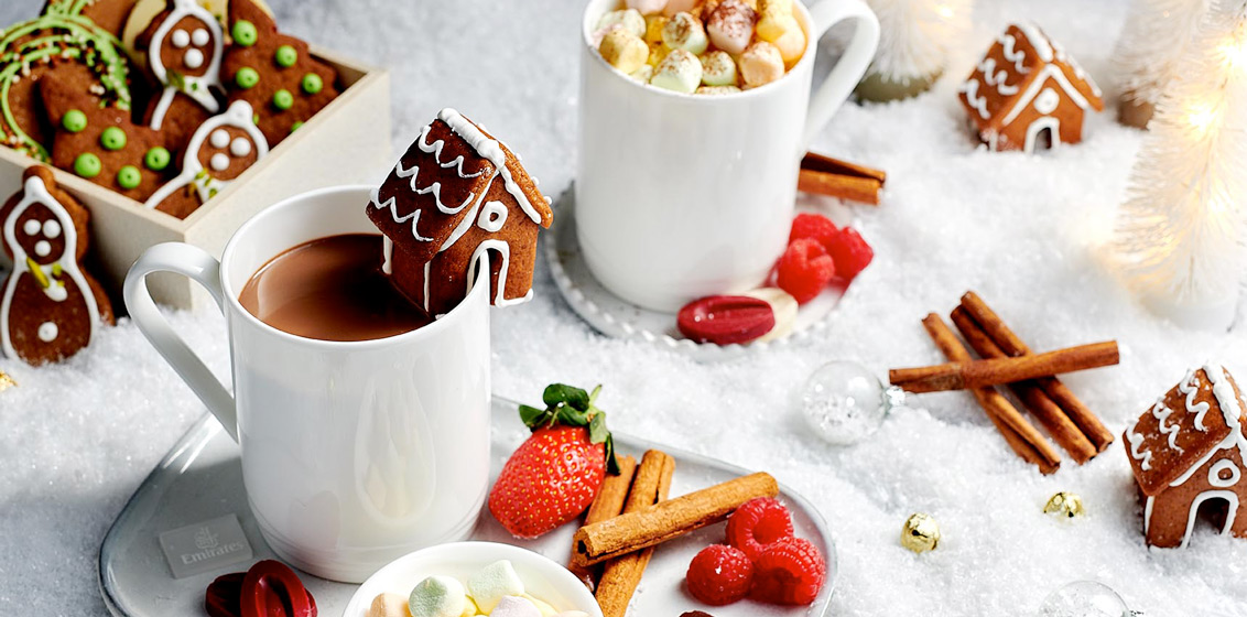 Emirates’ First and Business Class lounges in Dubai will be serving customer favourites like traditional roasted turkey with jus and cranberry sauce, glazed chestnuts, root vegetables, brussels sprouts and new potatoes, among a wide array of dishes. The festive feast is complemented by Moët & Chandon Grand Vintage 2013 and 2015, the Tranquil Tundra cocktail and Cozy Hearth mocktail by Dilmah, Jingle Mule cocktail from Evian, and Holiday Spiced Sour from Perrier. In First Class lounges, quintessential winter desserts await, from traditional stollen to scrumptious mince pies dashed with vanilla sauce and red currant cheesecake, to melt-in-the-mouth cinnamon profiteroles and spicy gingerbread chocolate cake.