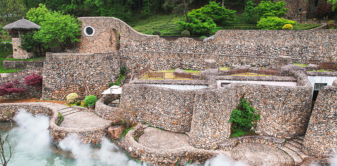 SALT of Anji is inspired by Catalan architect Gaudí’s imaginative use of natural stone and elements to create showstopping structures. The sustainability-focused resort features 108 guestrooms and villas, with contemporary interior design to complement the building’s stone aesthetic.