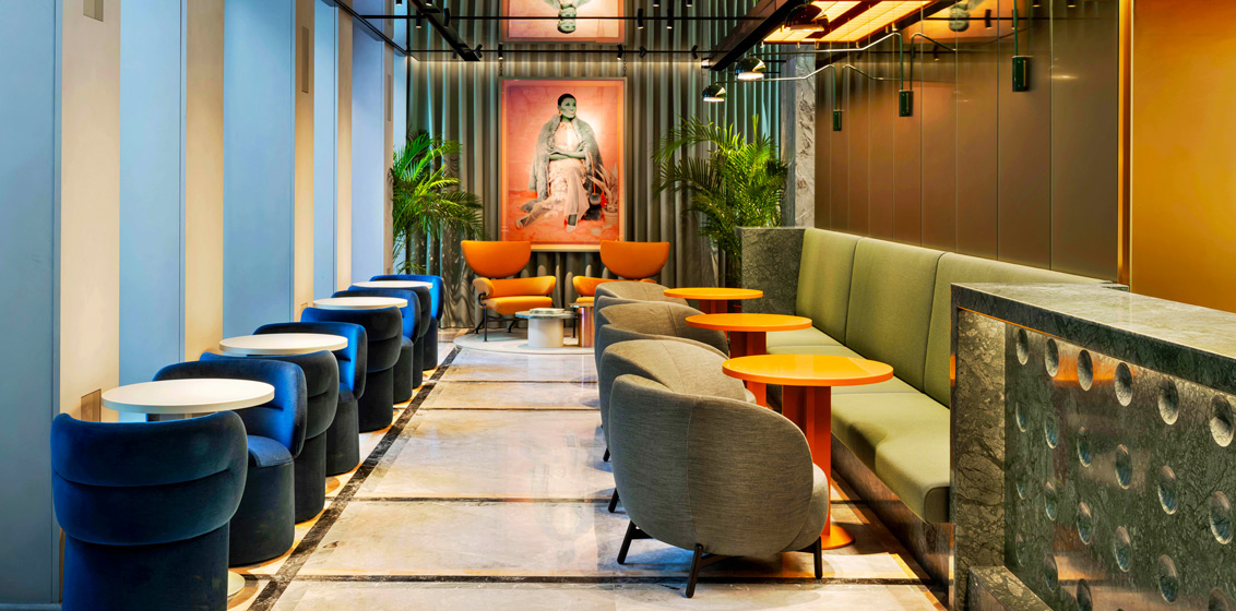 The hotel combines its distinctive colourful and sophisticated design with the rigor of Rationalist architecture. The timeless elegance of the interior design creates a strong link with the ‘Milanese’ style, establishing a seamless connection between the interior and exterior of the hotel.