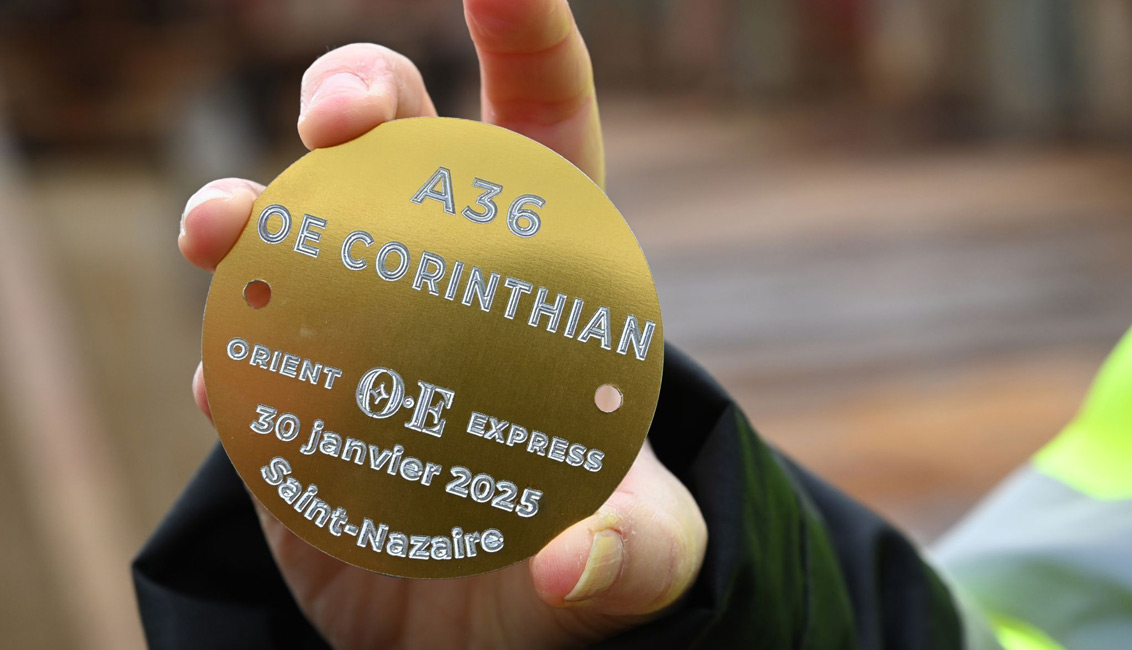 A double occasion was celebrated at the Chantiers de l’Atlantique shipyard in Saint Nazaire, France on Thursday this week with the keel laying of Orient Express‘ first luxury yacht OE Corinthian, and the first steel cutting of its second vessel, to be known as OE Olympian.