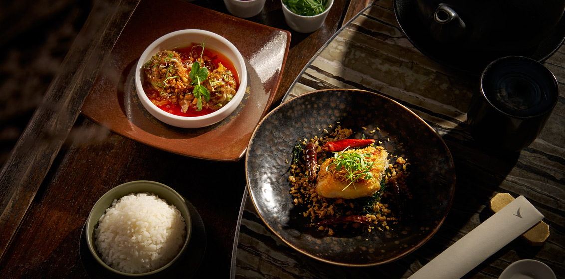 A tantalising selection of starters has been crafted to showcase the bold and invigorating flavours of Sichuan cuisine. The free-range chicken with Sichuan peppercorn and chilli sauce features delicate, tender chicken, heightened by the unique numbing spice of Sichuan peppercorns and the zesty kick of chilli sauce.