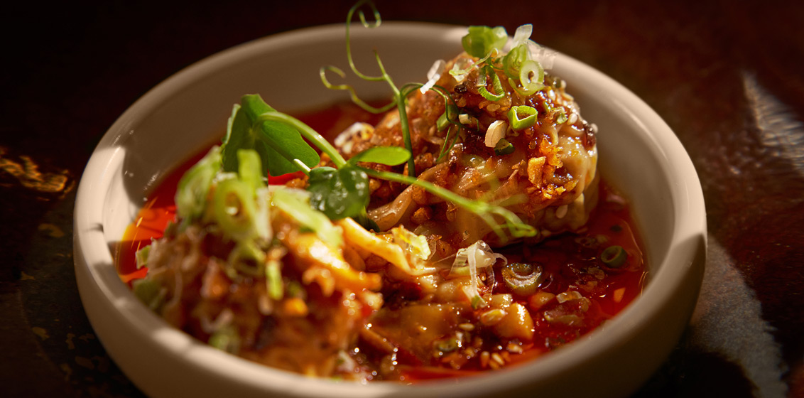 Just as enticing are the hand-wrapped Sichuan pork dumplings with chilli sauce which are filled with savoury minced pork and enveloped with rich, fragrant chilli oil.