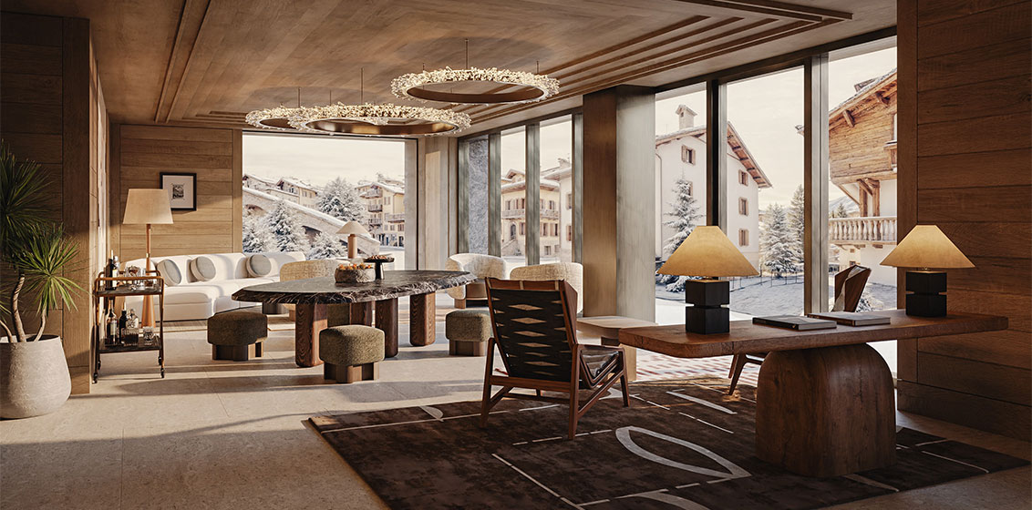 Renowned Tihany Design studio imagined the interiors, capturing the essence of ‘Embrace Cortina’—an invitation to reconnect with nature, heritage, and a sense of belonging. The interiors highlight rich materials and local craftsmanship, including timeworn marble mosaics crafted from Bianco Antico stone from the Veneto region, finished to evoke the polished charm of Italy’s historic buildings.