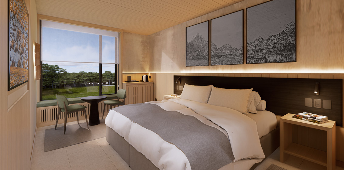 The Cormorant will feature two distinct room views, including serene forest views and tranquil water vistas overlooking the Beagle Channel. This design brings guests closer to the breathtaking natural beauty of Patagonia, immersing them in the landscapes that define this region.
