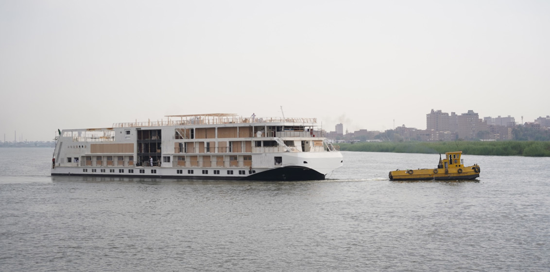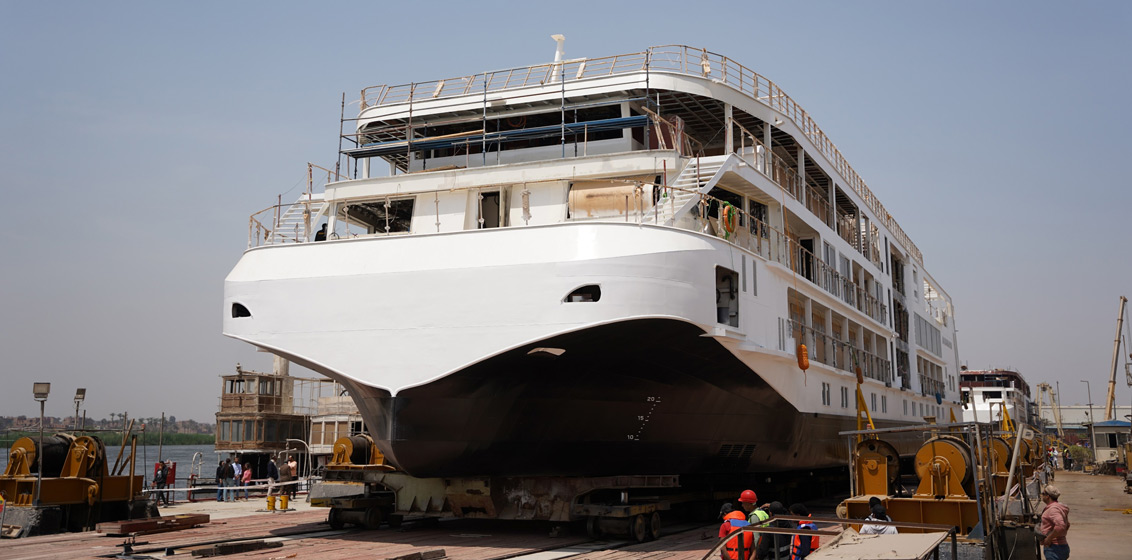 The traditional float-out ceremony of Viking Amun took place at Massara shipyard in Cairo and is significant because it marks the ship moving into its final stage of construction. She will now be moved to a nearby outfitting dock for final construction and interior build-out.