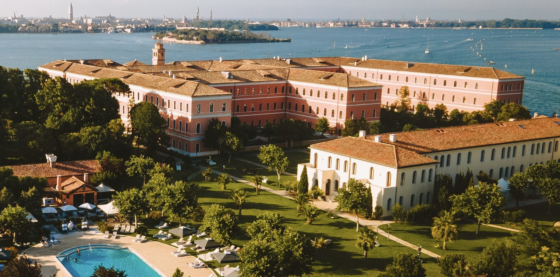 The five-hectare private island is easily accessible from the centre of Venice via an eight-minute boat ride from San Marco Square. The hotel itself is set within a collection of beautifully restored 900-year old monastery buildings and gardens including a 12th century church with views across the Venetian lagoon.