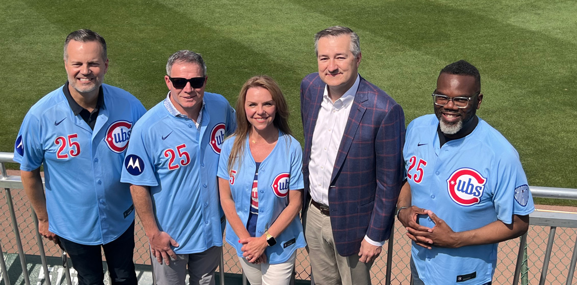 Lead image pictured at Wrigley Field in Chicago on Sunday morning from left are: Fred Dixon, Brand USA; Geoff Freeman, US Travel Association; Kristen Reynolds, Choose Chicago; Tom Ricketts, Chicago Cubs and Brandon Johnson, Chicago Mayor.