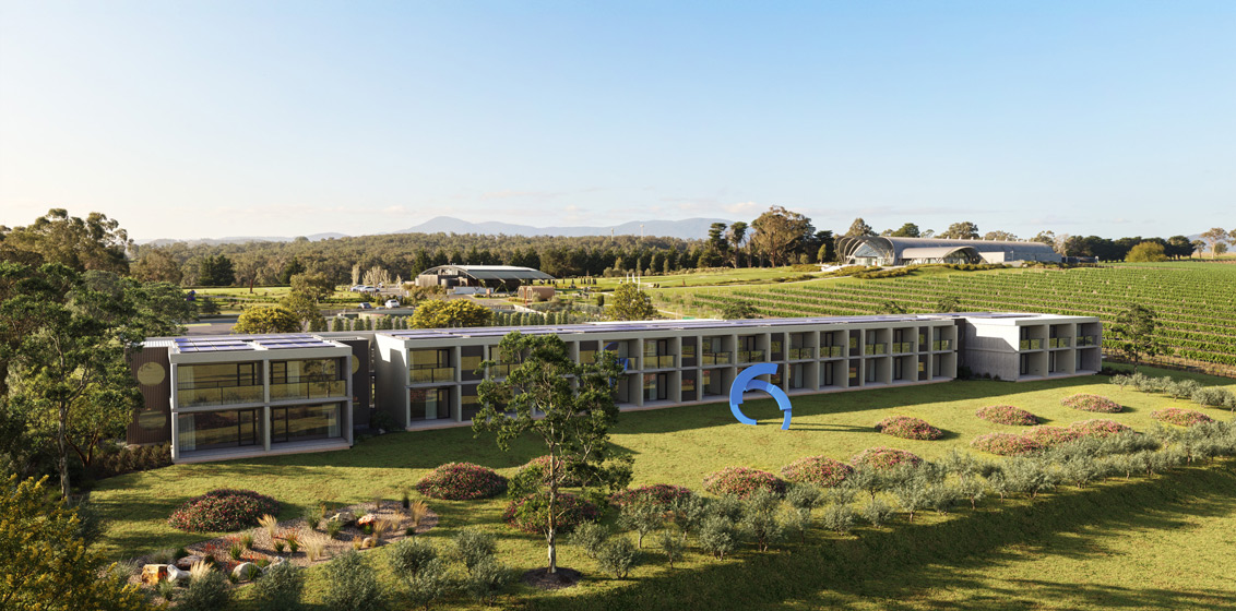 Although originally touted for June, the new all-suite Victorian hotel is now scheduled to open in December 2025 when it will complement the winery’s existing cellar door, fine-dining restaurant and events centre.