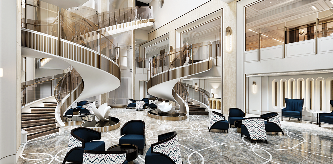 Seven Seas Prestige will feature the latest edition of the cruise line’s supremely decadent Regent Suite, spread across two levels and occupying a foot print of 817 square metres. The Skyview Regent Suite is priced at approximately AU$40,000 per night.