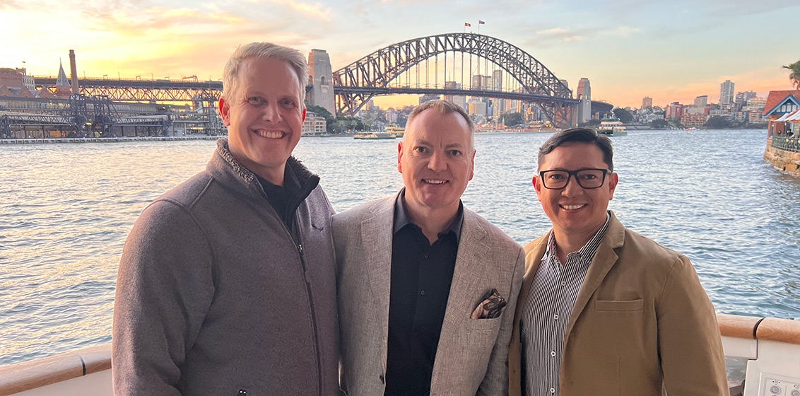 Pictured in Sydney yesterday afternoon aboard Mohasuwei, from left are: Ryan Powell, Chief Operating Officer, Sales & Touring, andBeyond; Norman Harper, andBeyond representative in Australia/NZ; and Cliver Rioja, General Manager of Amazon Explorer | Photo: LATTE/Guy Dundas