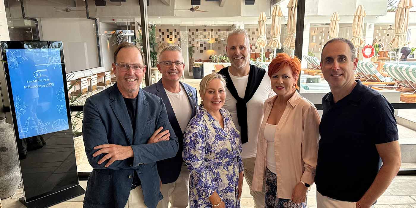 Lead image: From left are: Brent Wallace, Co-Director, SmartFlyer Australia; Anthony Goldman, Co-Director SmartFlyer Australia/Goldman Travel Group; Erina Pindar, Chief Operating Officer and Managing Partner, SmartFlyer; Stuart Reay, Co-Director, SmartFlyer Australia; Michael Holtz, Founder, Owner, CEO, SmartFlyer and David Goldman, Goldman Travel Group.
