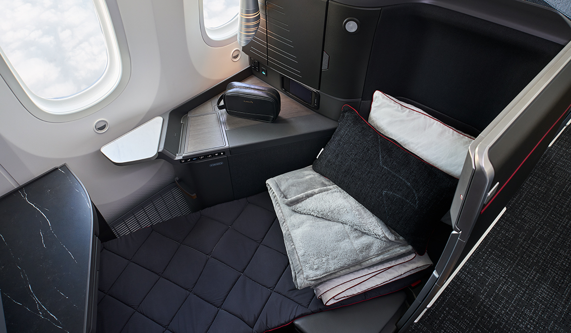 Flying over the Australian summer, the enhanced aircraft offers passengers an elevated flight experience, with customers traveling in the 51 Flagship Suite® seats enjoying more personal storage space, a wireless charging pad, USB-C and AC power and a one-of-a-kind chaise lounge seating option with an adjustable headrest pillow.