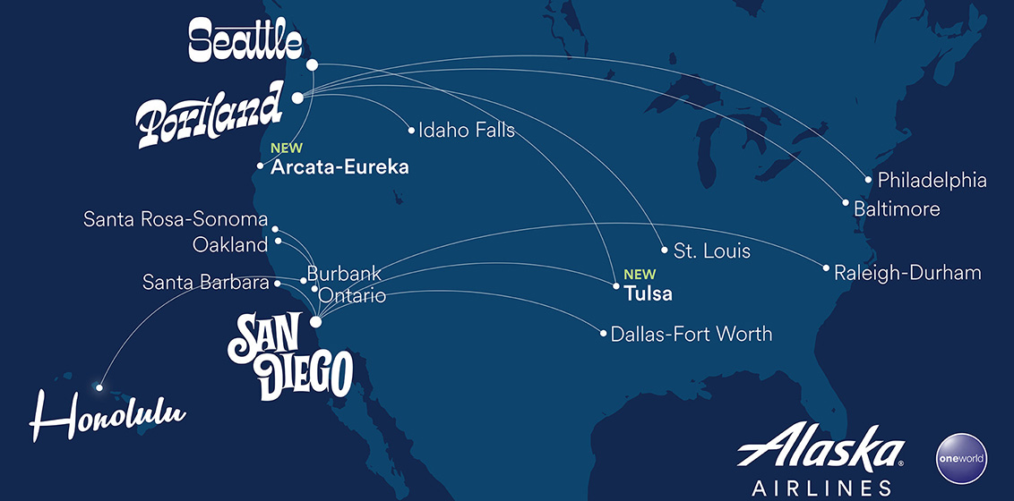 The new destinations for the airline include Tulsa, Oklahoma (TUL) and Arcata-Eureka, California (ACV), located along the California Redwood Coast. Alaska Airlines will fly daily between San Diego and Tulsa, and from Seattle to both Tulsa and Arcata-Eureka. With these new locations, Alaska Air Group will serve 142 destinations in 2026—its most ever. And with the addition of Arcata-Eureka, it will serve more California airports year-round than any other airline.