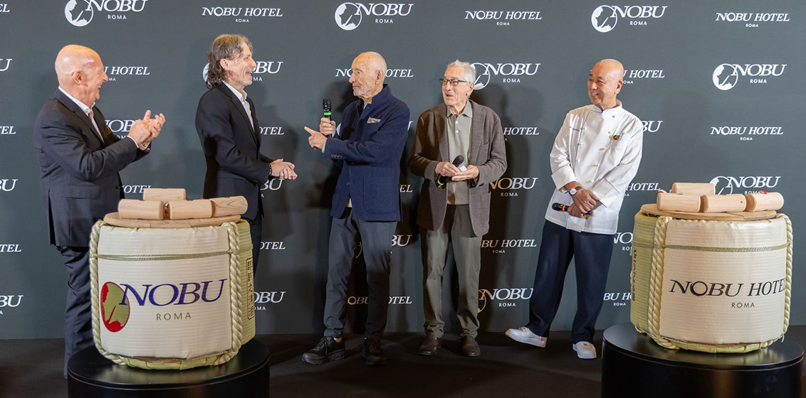 Nobu Hospitality‘s Italian debut, Nobu Hotel and Restaurant Roma, has officially opened with a traditional Sake Ceremony on 6 November attended by its three shareholders – Chef Nobu Matsuhisa, Robert De Niro and Meir Teper.