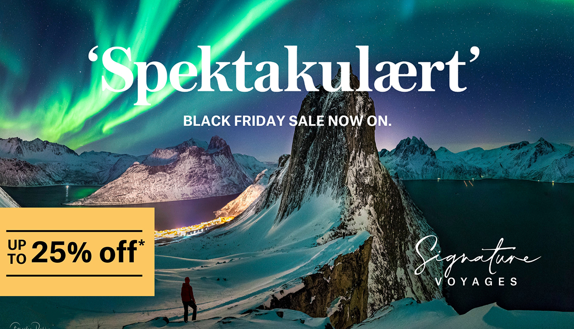 The Black Friday Sale starts from 15 November to 8 December 2024, with early access from tomorrow! Connect with Hurtigruten’s dedicated travel specialists to curate your clients’ journey on +61 1300 146 551 and quote the code ‘BLACKFRIDAY25‘ to unlock incredible savings – for a limited time only!