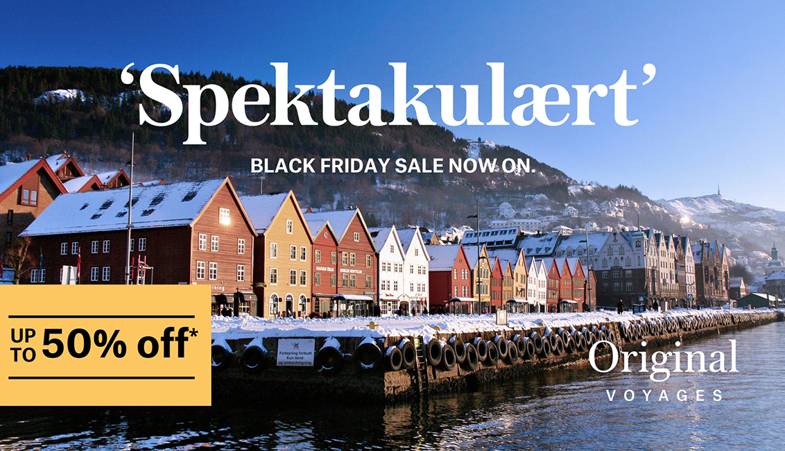 It’s not just the views that are spectacular in this year’s Black Friday Sale. Save up to 50% on Hurtigruten cruises along Norway’s famously picturesque coastline – at a price that’s just as amazing. Or, as the locals would say… ‘Spektakulært’!