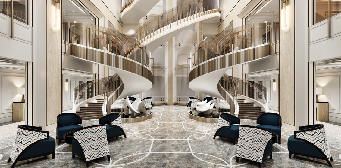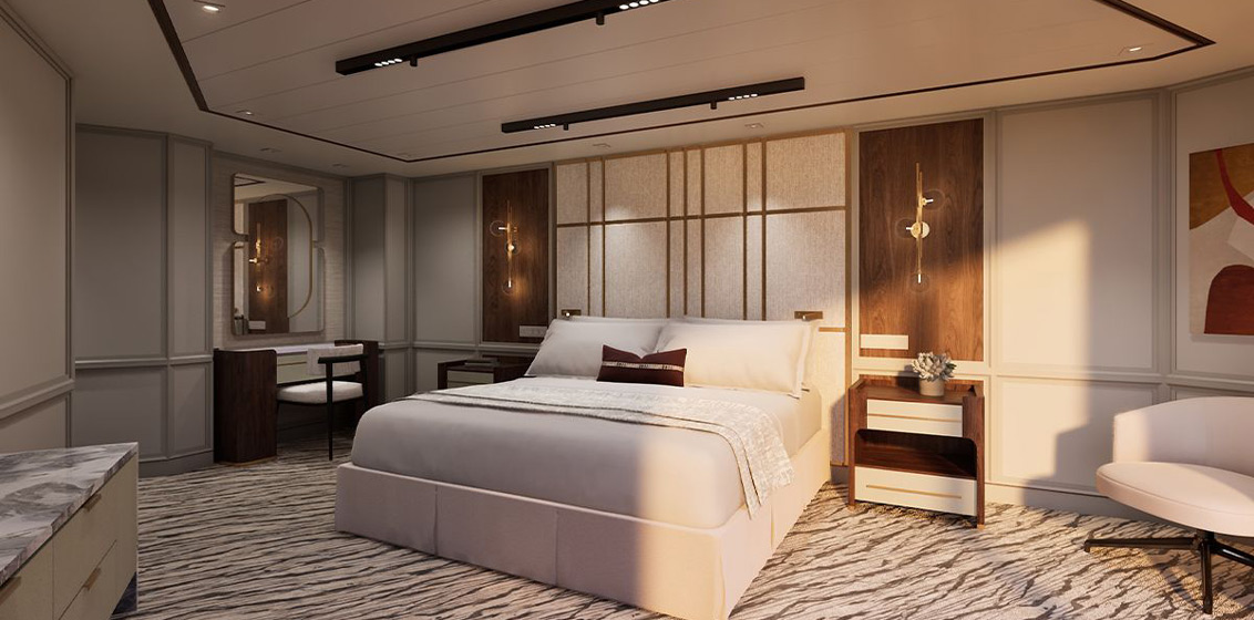 The class will offer 12 distinctive accommodation categories, including four all-new suite types, and the largest all-inclusive, ultra-luxury cruise ship suite in history: the Skyview Regent Suite, and two-level Skyview and Grand Loft Suites.