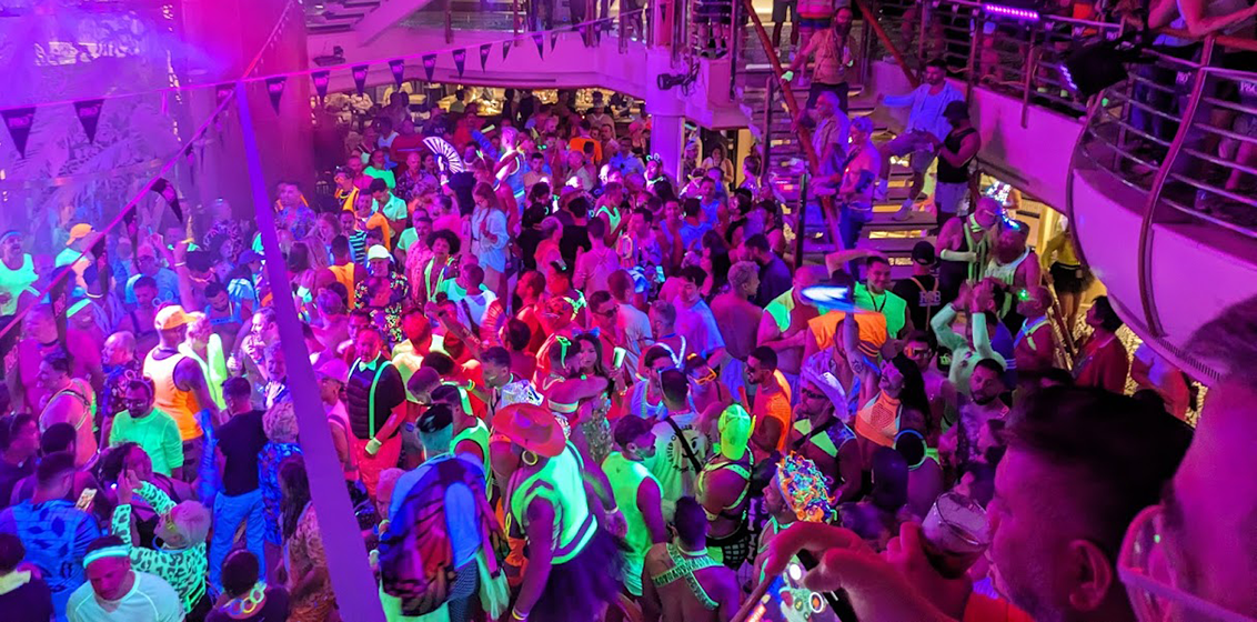 An inspection of the resort confirmed the idea. “You walk into the resort and it’s like walking into an ocean liner atrium,” he noted. “They built it almost like a cruise ship… the effect was instant.” The design allowed the team to visualise entertainment, staging, and communal spaces similar to those found onboard Pride cruises.