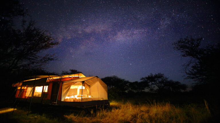 For the adventurous, this year Olakira Migration Camp, has introduced new star gazing tents offer the opportunity to sleep under the African night sky. They have been designed so that a portion of the tent boasts a 270-degree view from beneath a meshed net, offering guests an outdoor experience whilst still remaining indoors. Guests will have the option to have their beds rolled from the main bedroom out to the custom-designed, mosquito net canopy at the front of their tent, allowing them to look up at the African night sky from the comfort of their bed. Look out for shooting stars, listen to the grunts of a million wildebeest, and maybe catch the low, reverberating roar of a lion. Guests can roll their beds back into the main bedroom of their tent at any time during the night.