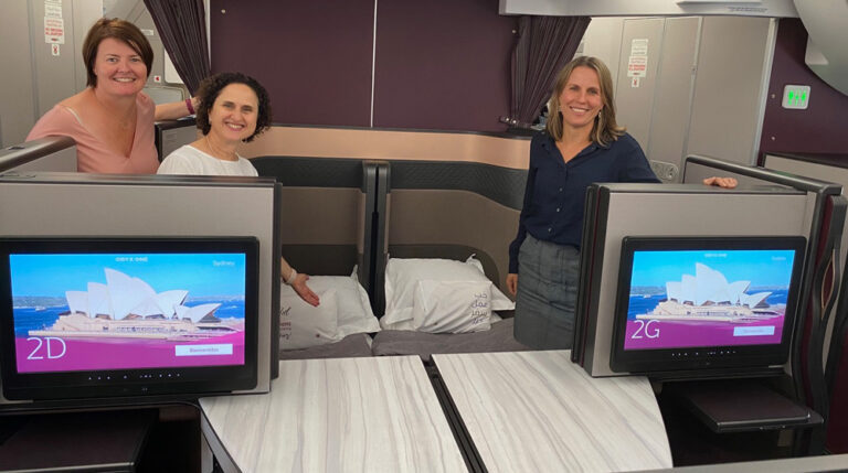 Qatar Airways recently offered a day trip famil from Sydney to Canberra as a unique opportunity to experience its newly-delivered Airbus A350-1000 aircraft and, more specifically, the fabled business class Qsuite. Three of TravelManagers’ NSW-based personal travel managers (PTMs) were among a group of travel agency participants who stepped aboard.