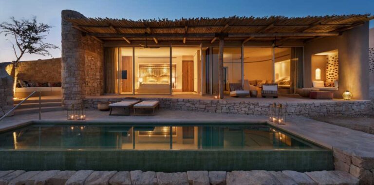 Israel’s Negev Desert might not be as big as the 348,750 sq km Great Victoria Desert but even at a mere 13,000 sq km it deserves to be taken seriously – as does its premier resort, Six Senses Shaharut. It’s a unique oasis, four hours’ drive south of Tel Aviv. In a 360-degree empty panorama, palest pink with uninterrupted blue sky over. You’re emotionally lost in another world even before you arrive.