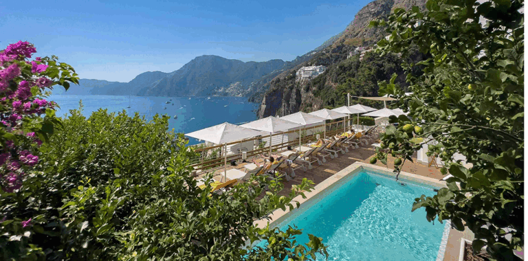 The hotel is located on the cliffs of Praiano on Italy’s Amalfi Coast