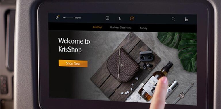 Singapore Airlines (SIA) will offer live online shopping on board its aircraft from this weekend when the KrisShop e-commerce platform becomes available via the KrisWorld in-flight entertainment (IFE) system.